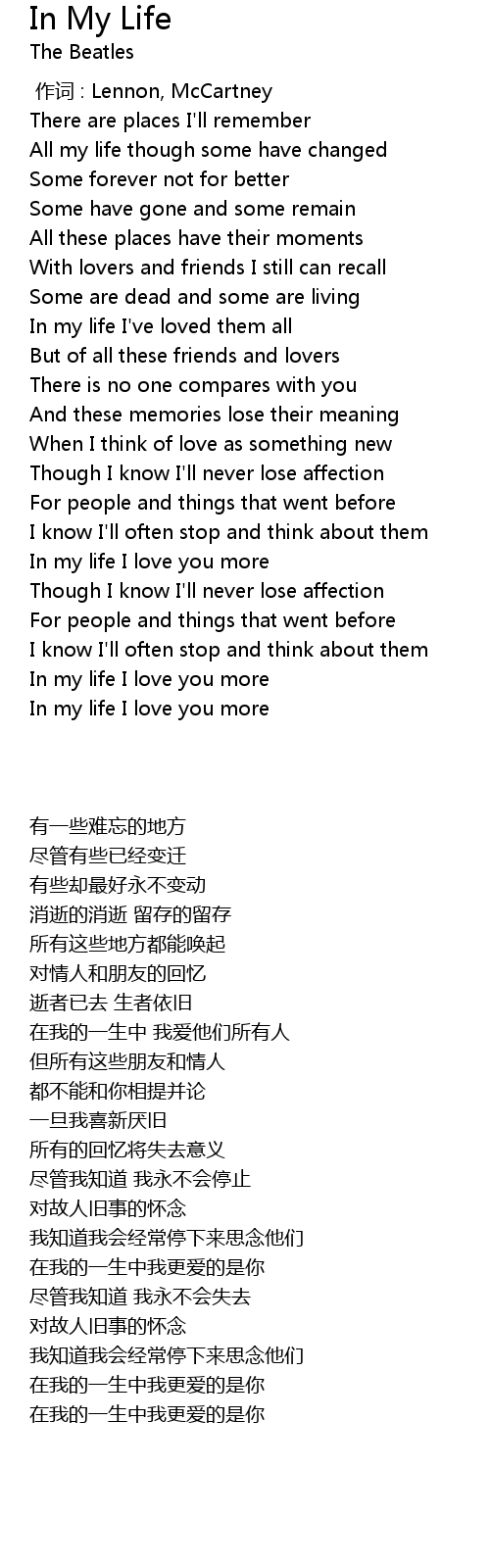 | [01:23.600] | In my life I love you more |