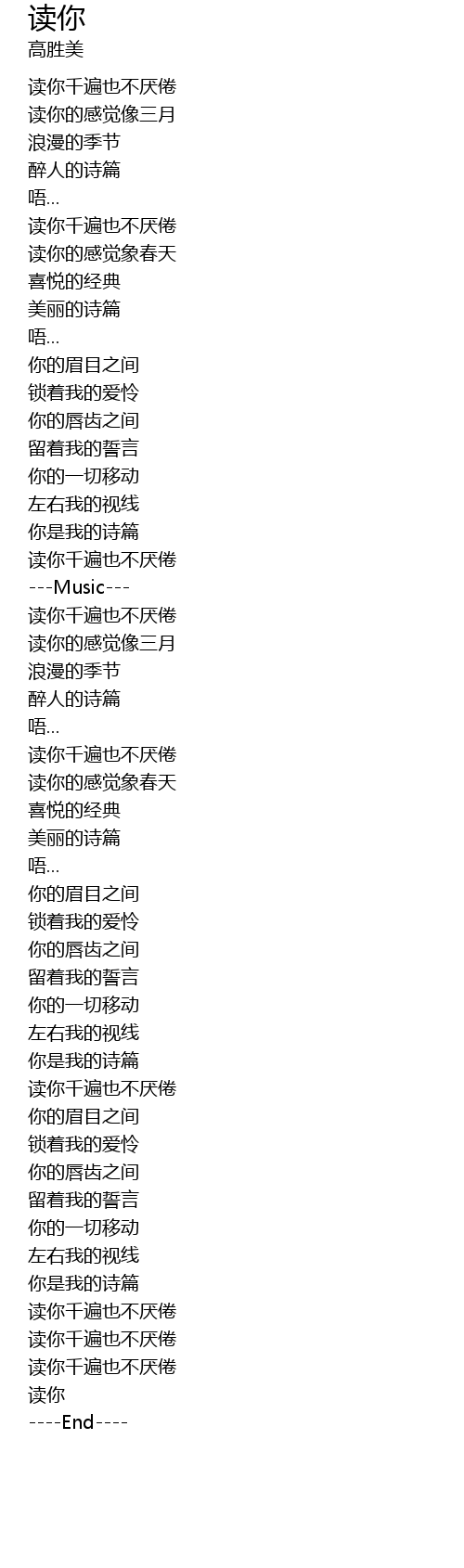 | [01:43.25] | 读你千遍也不厌倦 |