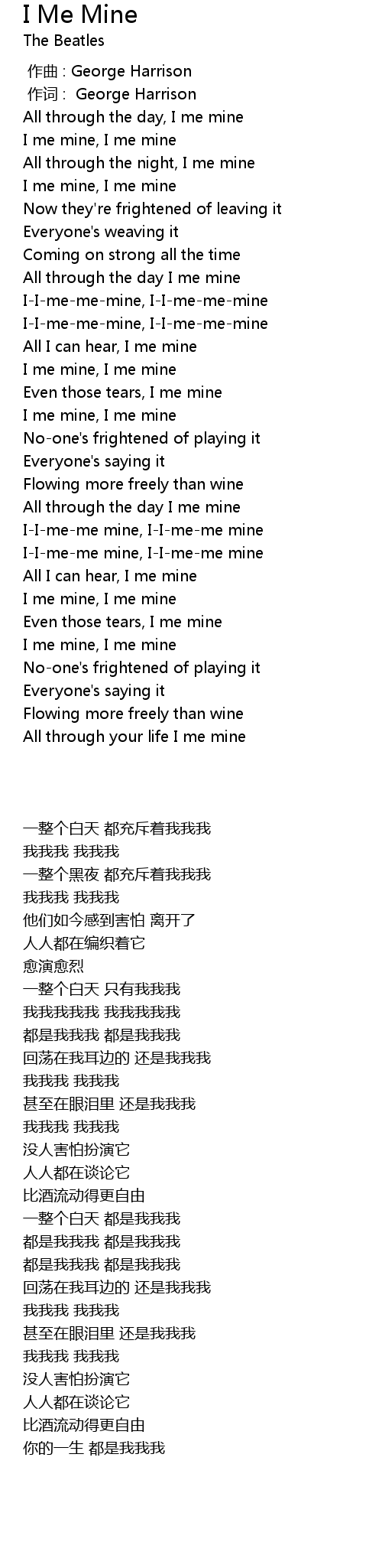 | [01:29.55] | I-I-me-me mine, I-I-me-me mine |