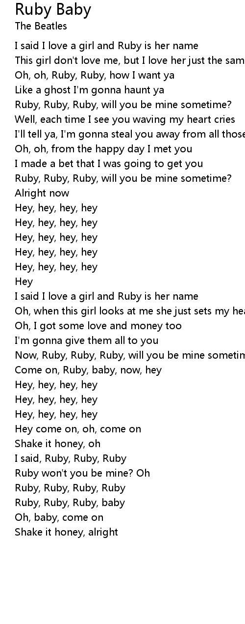 Now, Ruby, Ruby, Ruby, will you be mine sometime? |