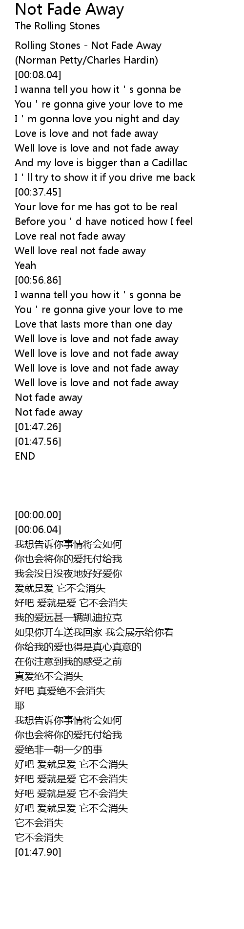 | [01:46.33] | Not fade away |