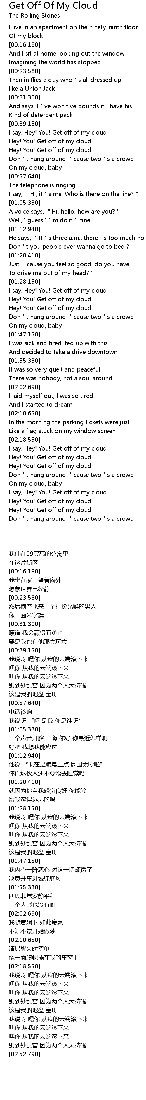 | [00:41.480] | I say, Hey! You! Get off of my cloud |