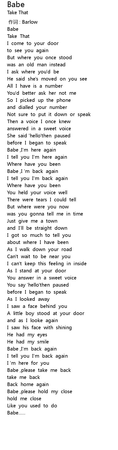 | [04:25.22] | Babe ,please take me back |