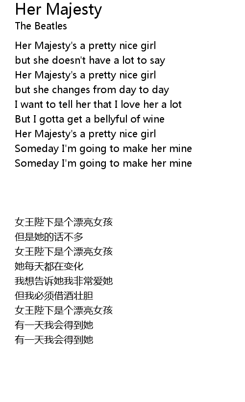 | [00:20.240] | Her Majesty's a pretty nice girl |