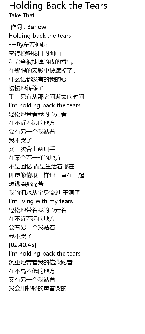 | [00:38.13] | shǒu shàng zhǐ yǒu cóng nà zhī jiān shì qù de shí jiān |