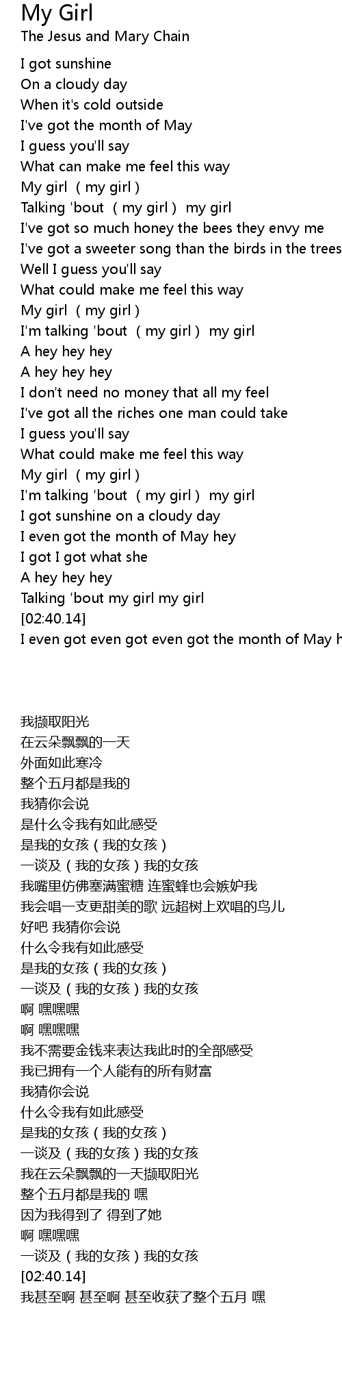 | [02:30.49] | Talking 'bout my girl my girl |