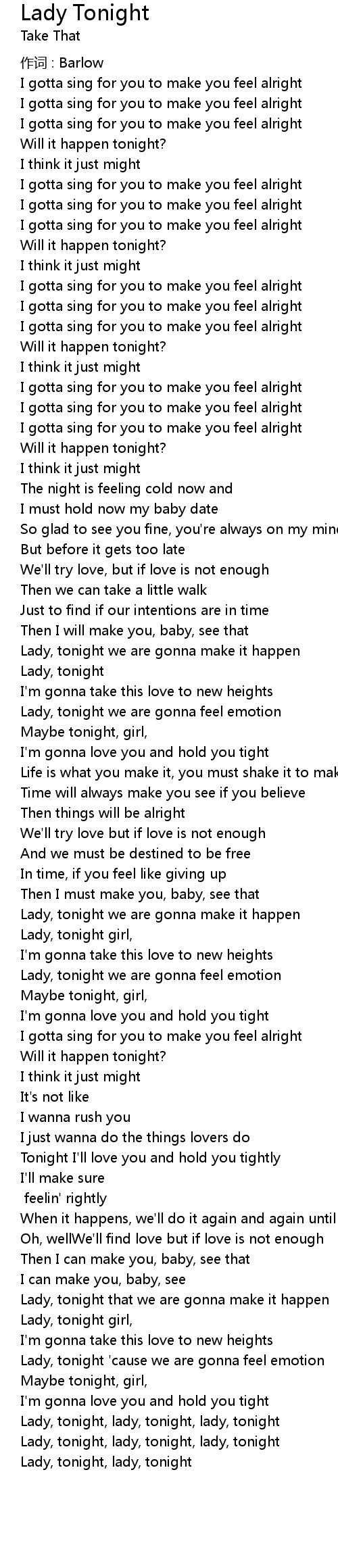 | Lady, tonight, lady, tonight, lady, tonight | |