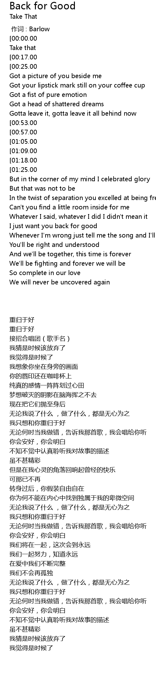 | [00:12.00][00:00.00] | Back For Good |