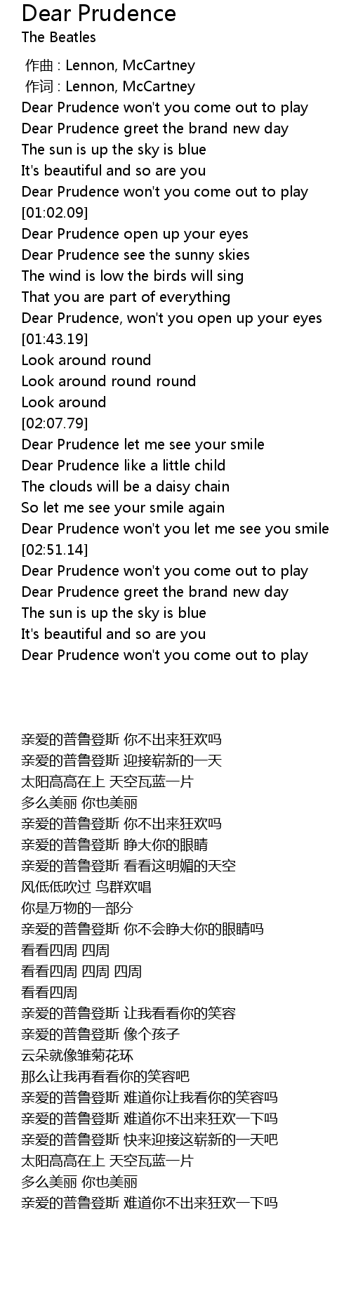 | [03:30.14] | Dear Prudence won't you come out to play |