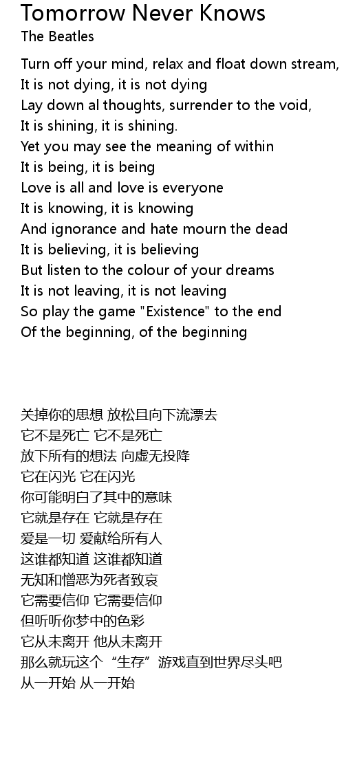 | Song | Tomorrow Never Knows |