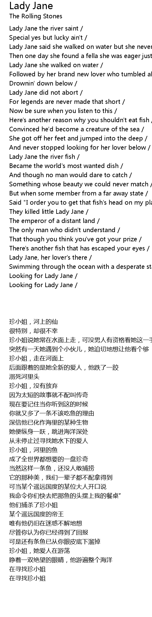 | [00:23.980] | Lady Jane said she walked on water but she never had a man to show / |