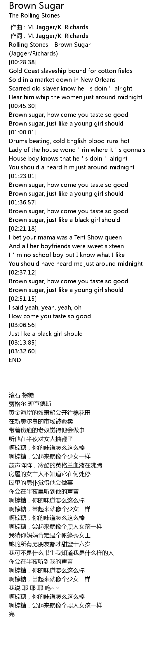| [00:00.00] | Rolling Stones Brown Sugar |