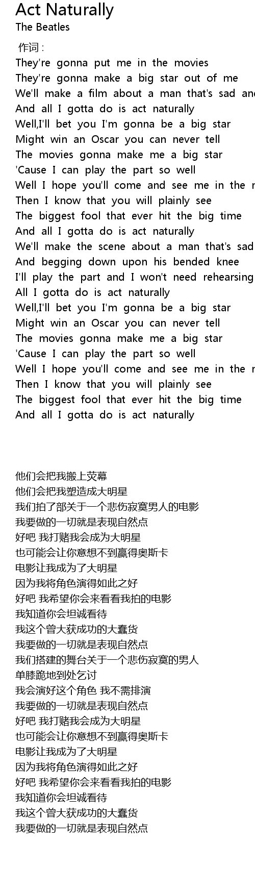 | [00:47.168] | Well I hope you' ll come and see me in the movies |