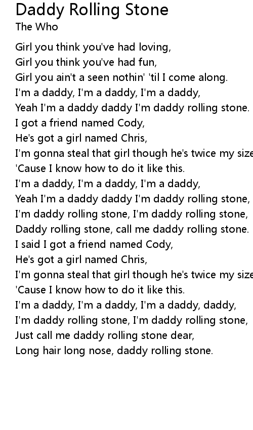 Yeah I'm a daddy daddy I'm daddy rolling stone.