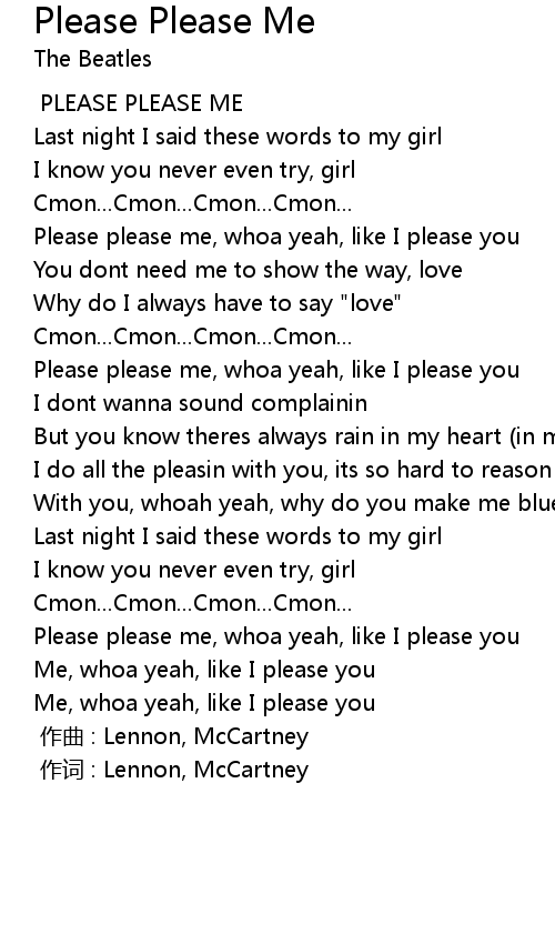 | [00:55] | Please please me, whoa yeah, like I please you |