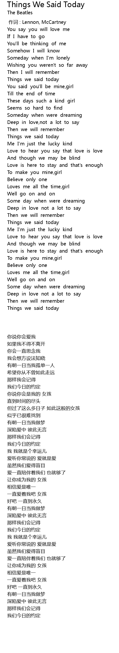 | [00:27.97] | Things we said today |