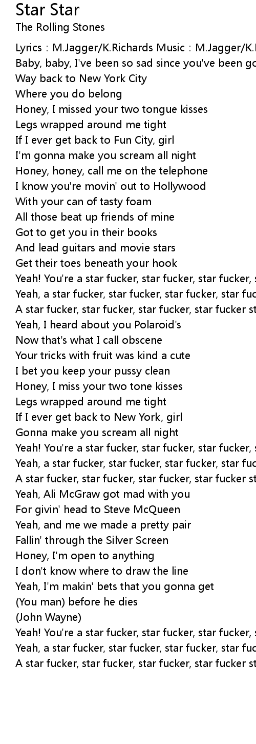| A star fucker, star fucker, star fucker, star fucker star | |