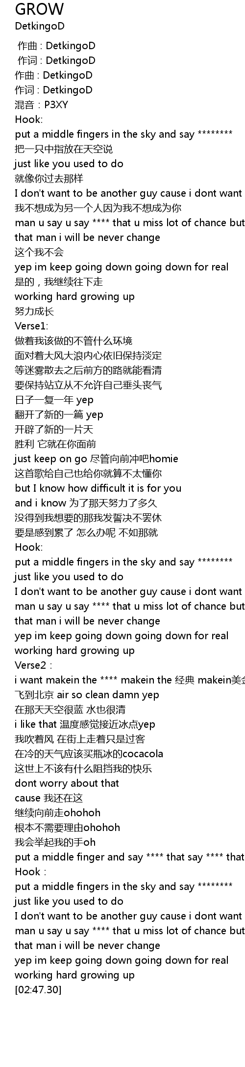 | [02:20.21] | put a middle fingers in the sky and say ******** |