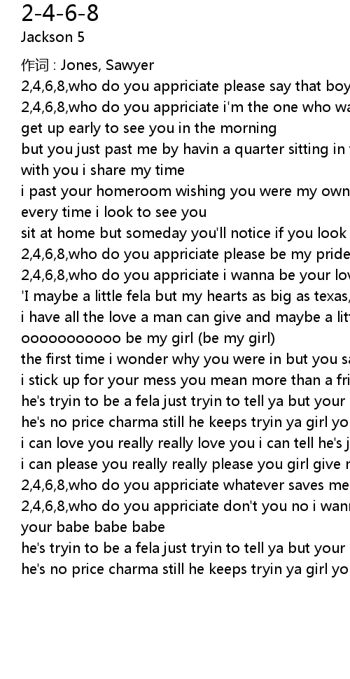 | 2, 4, 6, 8, who do you appriciate i' m the one who wants to be your baby | |