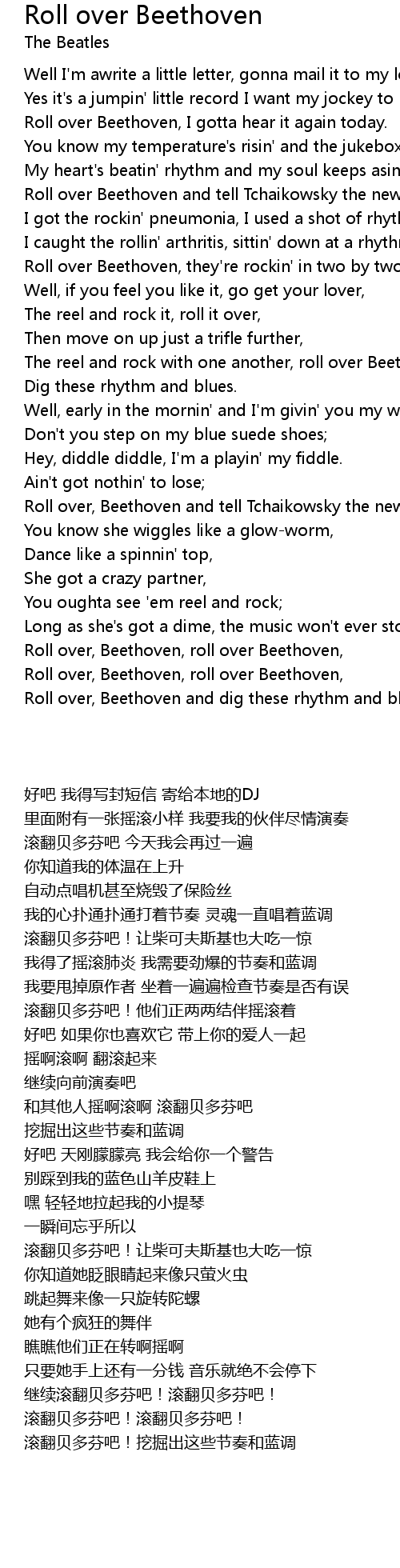 Roll over, Beethoven, roll over Beethoven, |