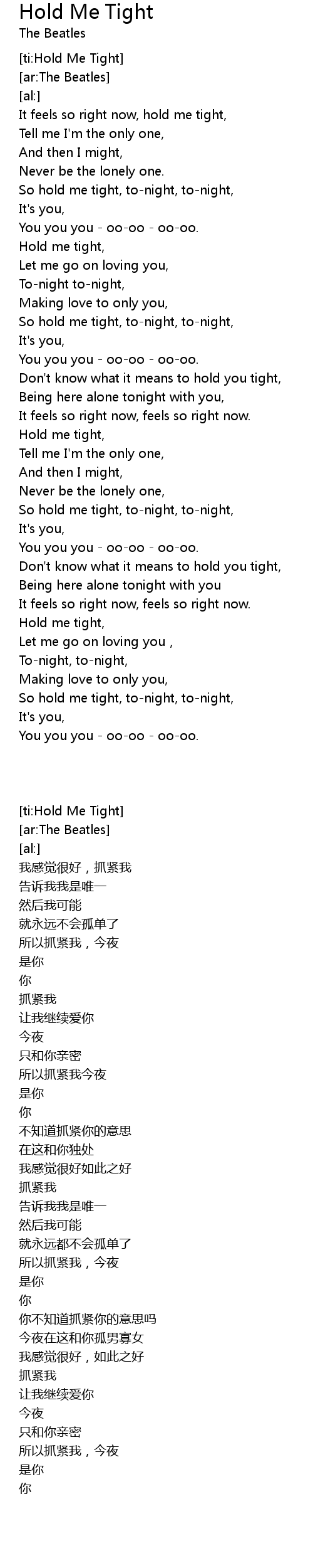 | [00:46.62] | So hold me tight, tonight, tonight, |
