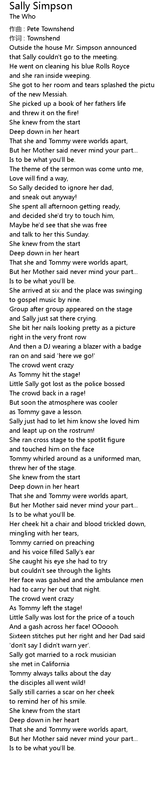 | 作词 : Townshend | |