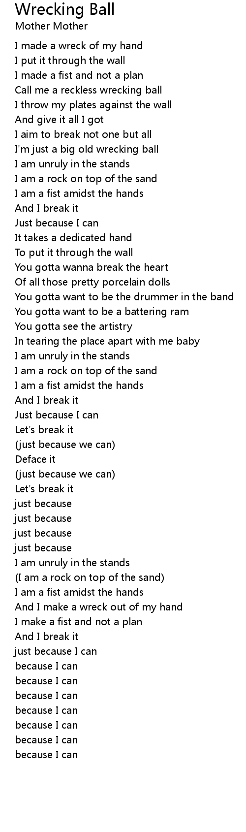 Call me a reckless wrecking ball |