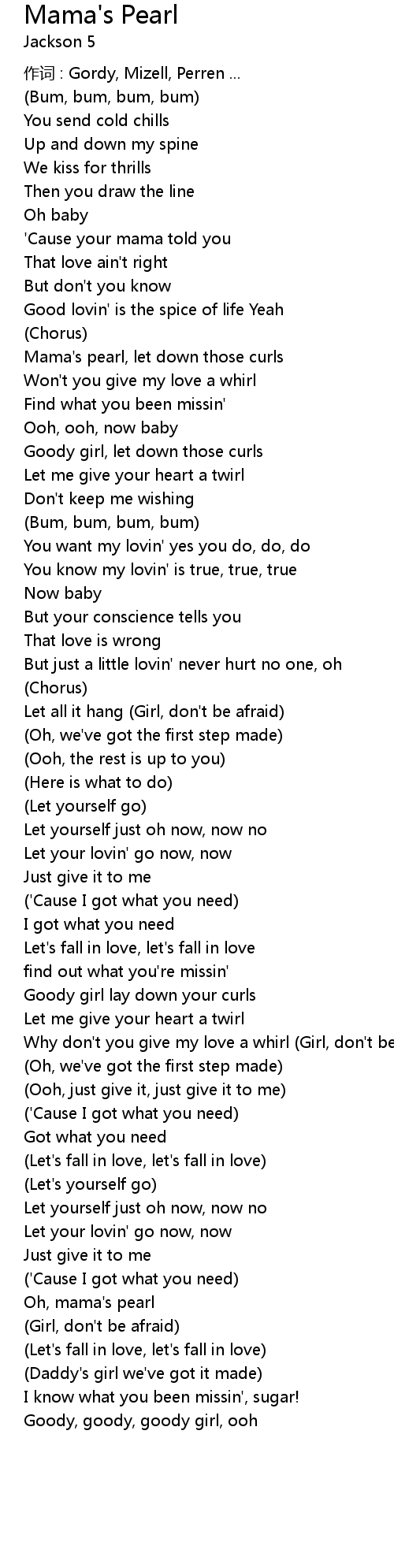 | Mama's pearl, let down those curls | |