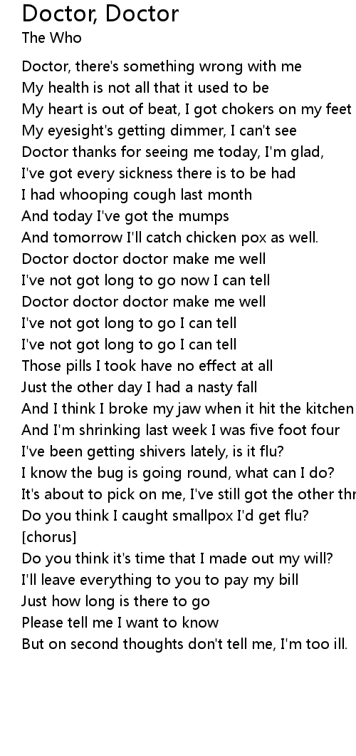 | Doctor doctor doctor make me well | |