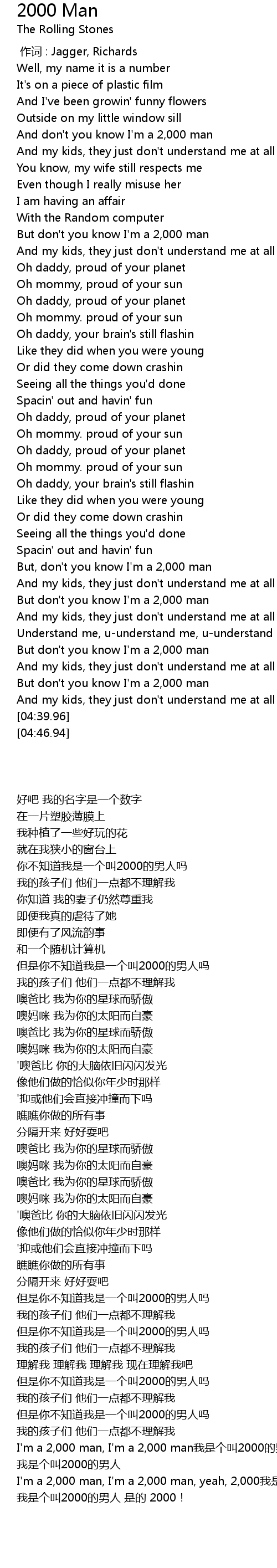 | [00:00.00] | 作词 : Jagger, Richards |