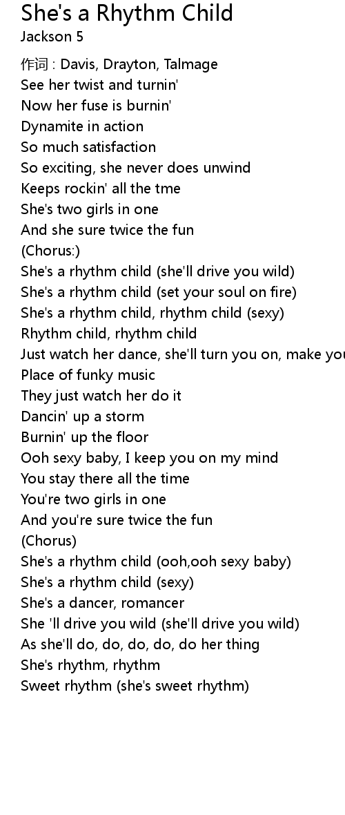 | She's a rhythm child, rhythm child (sexy) | |
