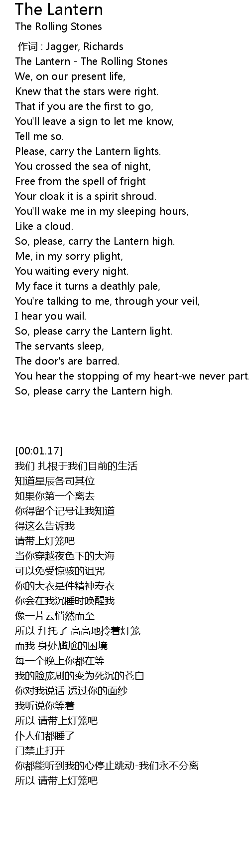 | [00:01.17] | The Lantern The Rolling Stones |
