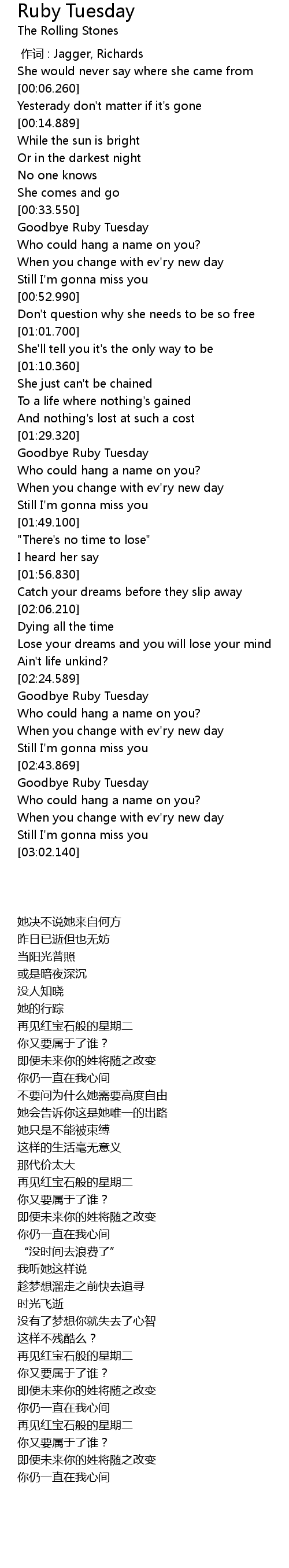 | [02:27.629] | Goodbye Ruby Tuesday |
