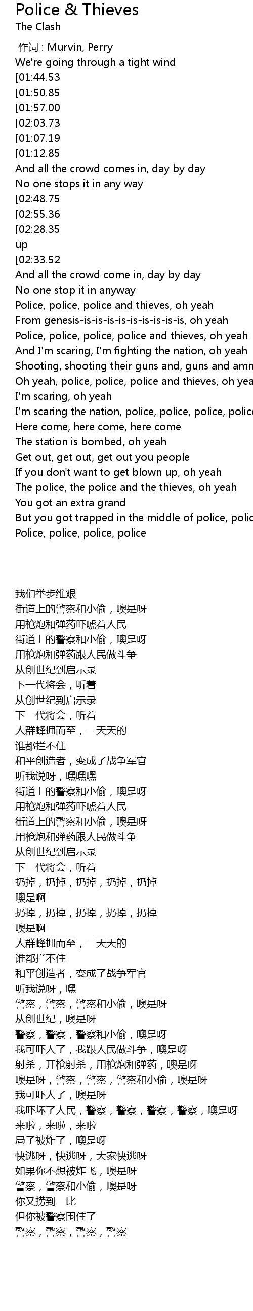 | [05:05.44] | The police, the police and the thieves, oh yeah |