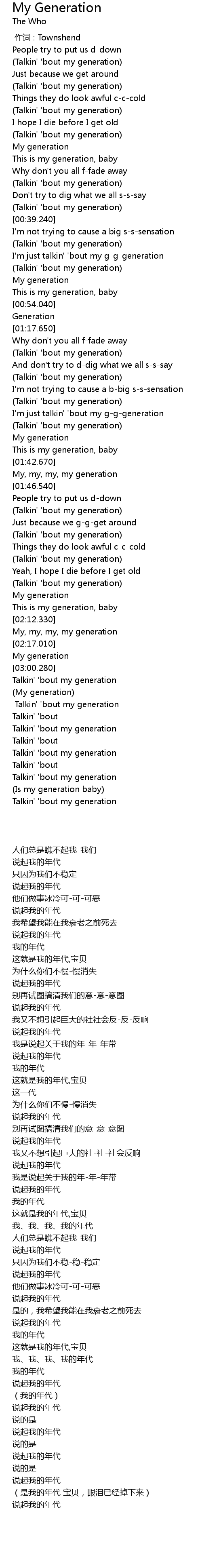 | [00:33.010] | (Talkin' 'bout my generation) |