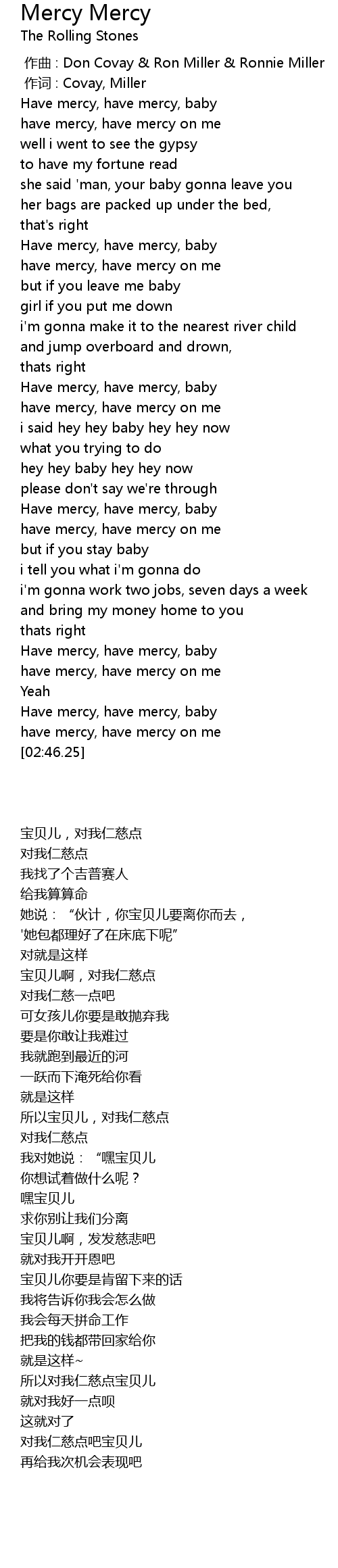 | [00:00.00] | zuo qu : Don Covay Ron Miller Ronnie Miller |