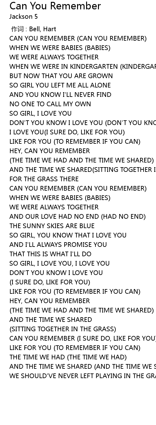 | [00:20.63] | CAN YOU REMEMBER CAN YOU REMEMBER |