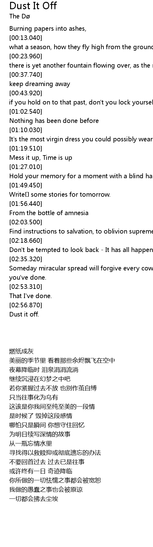 | [02:24.020] | Don't be tempted to look back - It has all happen before |