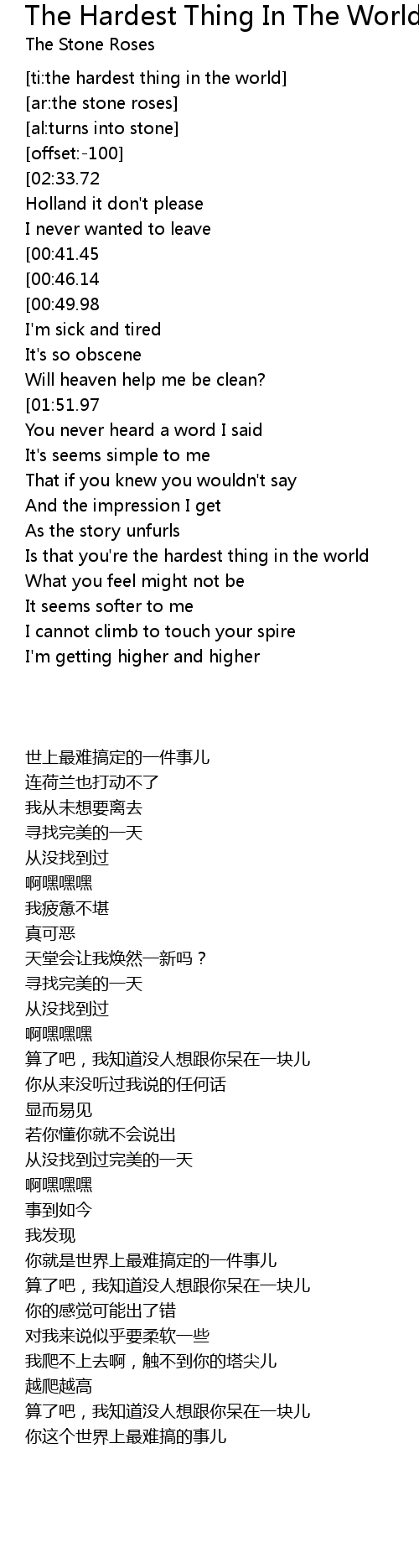 [00:01.75][02:33.72] The hardest thing in the world