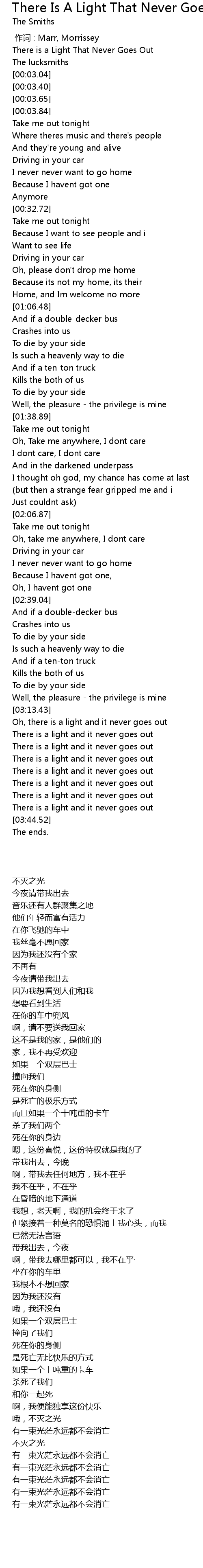 | [03:14.35] | Oh, there is a light and it never goes out |