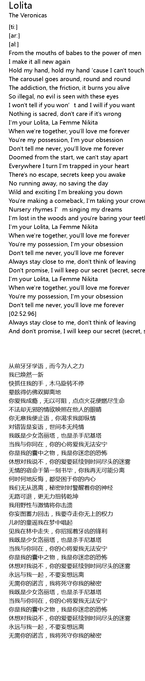 | [00:42.27] | I'm your Lolita, La Femme Nikita |
