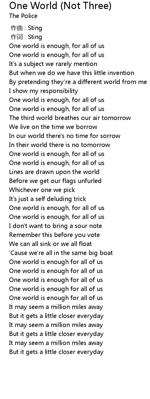 | [01:44.22] | One world is enough, for all of us |