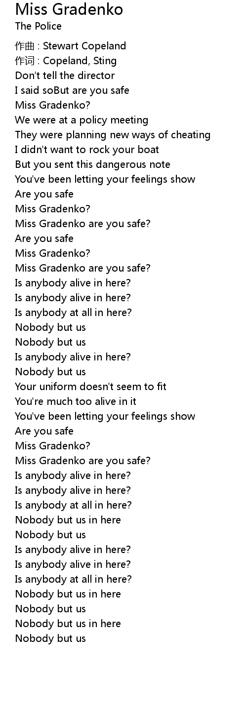 | Song | Miss Gradenko |