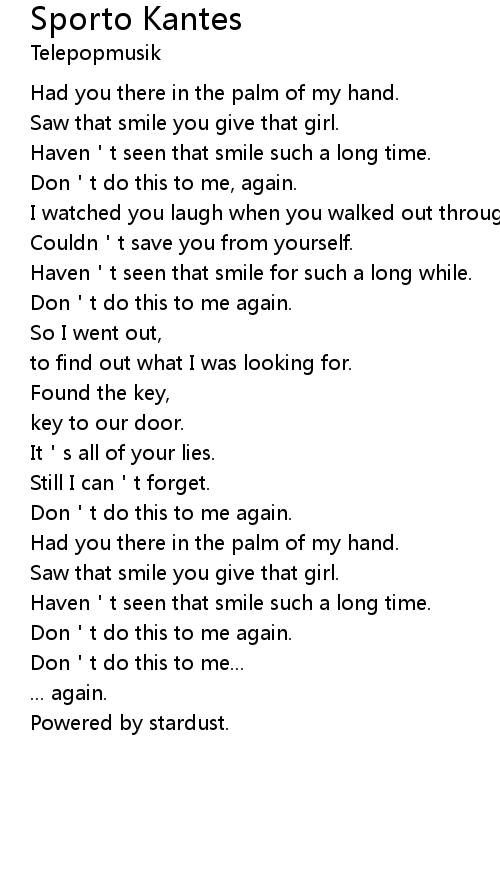 | Don t do this to me again. | |