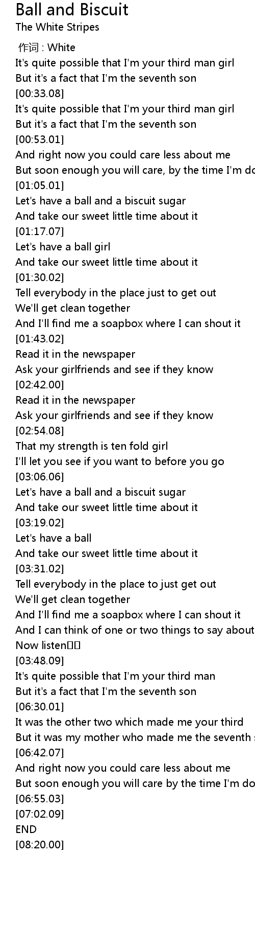 | [03:12.08] | Let's have a ball and a biscuit sugar |