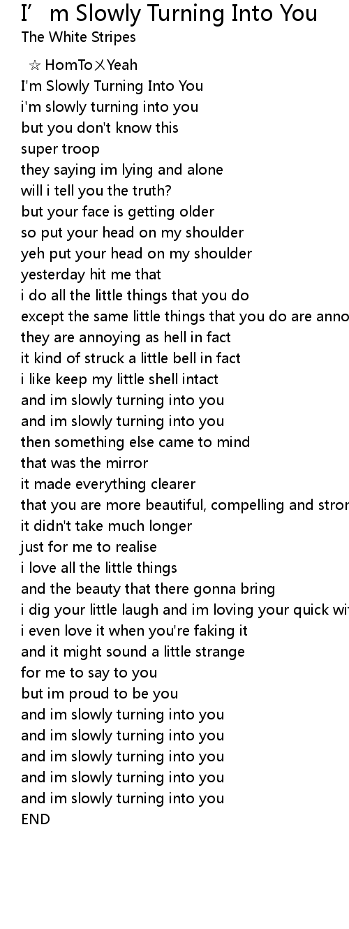 | [00:02.72] | I'm Slowly Turning Into You |