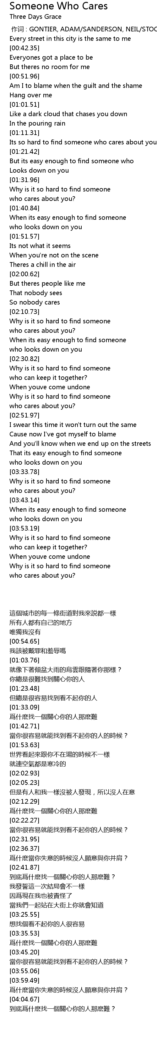 | [02:16.84] | who cares about you? |