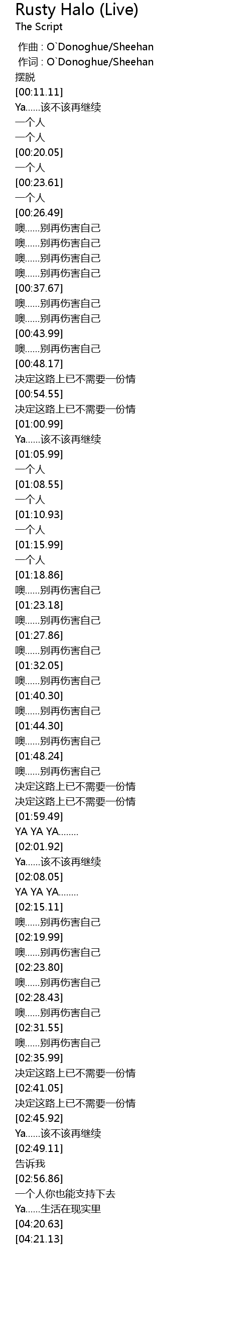 | [02:03.11] | Ya......该不该再继续 |