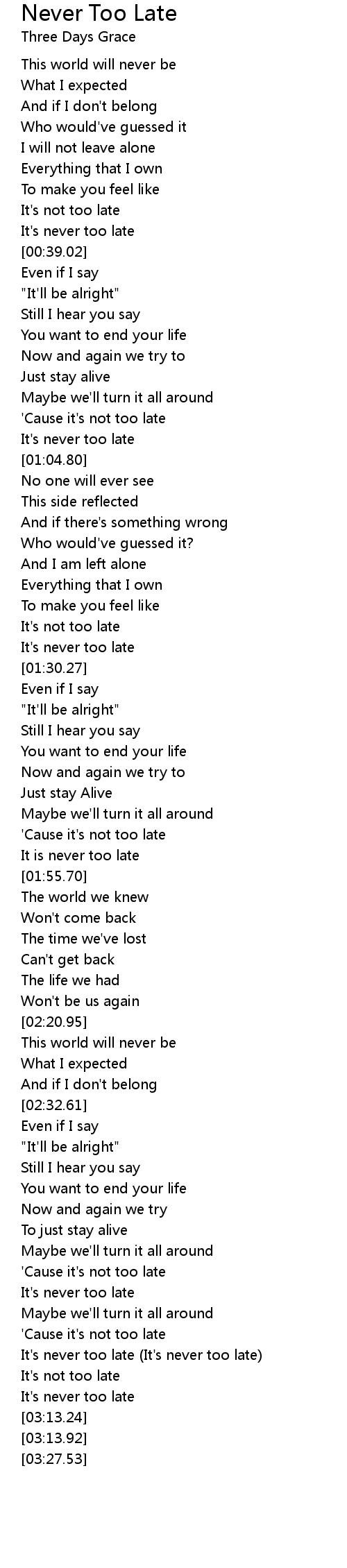 Never Too Late Lyrics