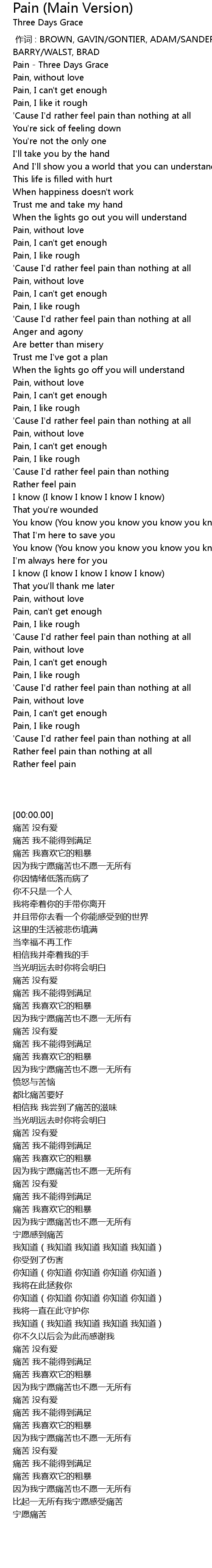 | [00:00.00] | Pain - Three Days Grace |
